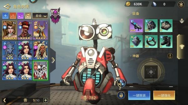 1、进入到游戏的“角色”界面,优先选择五星英雄进行培养,如下图,先提升等级