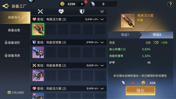 2、然后一键穿戴装备,穿戴后再点击“一键强化”按钮