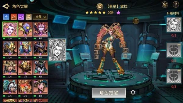 5、最后进入到“角色觉醒”界面,可以通过招募获取角色碎片,然后再添加相应的材料就可以一键觉醒了
