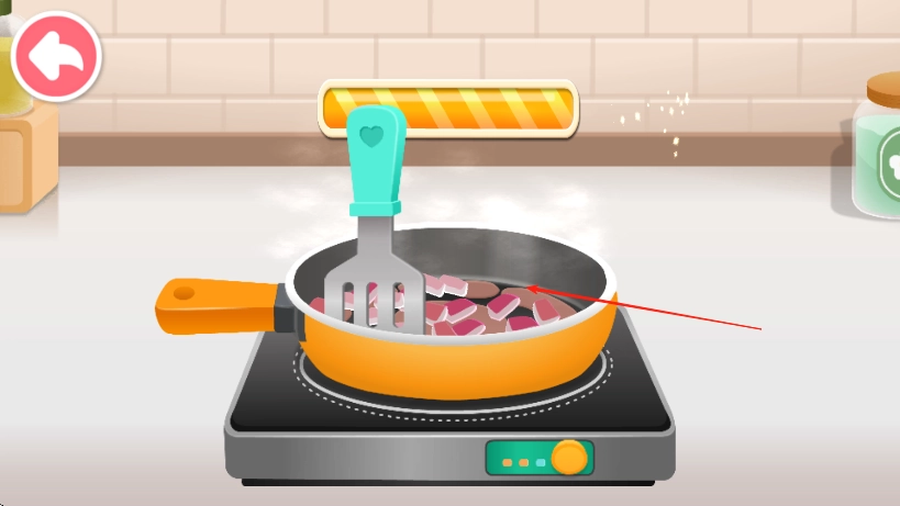 2、即时反馈激励:当食材加工成功,会出现彩色光效和欢快音效。成品完成后,还会呈现可爱的动画,比如热狗冒出热气,食材跳跃欢呼。