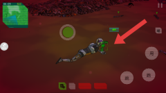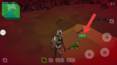 2、画面中有身着机甲的角色,角色前方地面上有一把绿色的枪械,可点击右侧使用操作的按钮,呈现出玩家拾取武器的场景。
