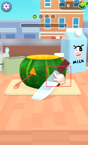 4、对准红框橙色标记,用刀切割南瓜完成任务。