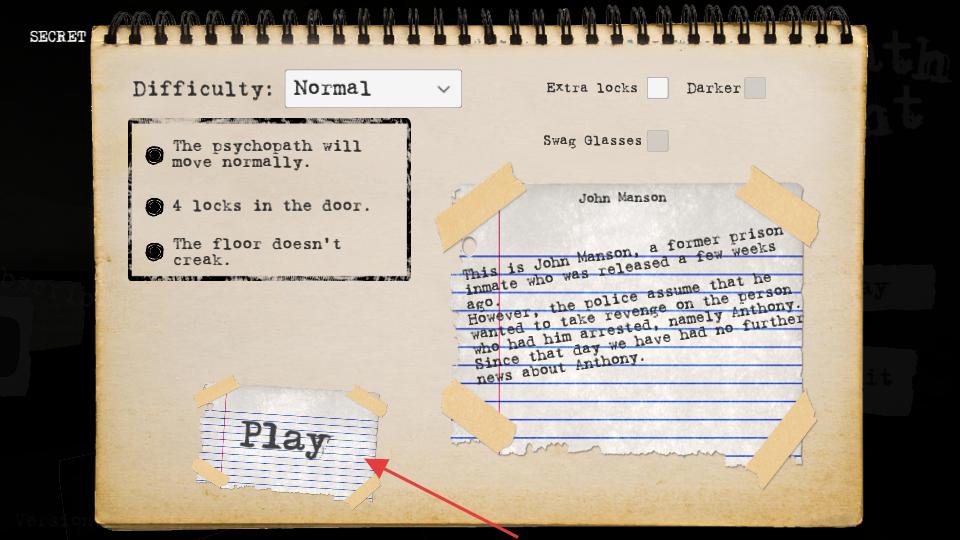 2、来到难度选择界面,确认Normal难度,阅读规则信息,了解门上锁具、敌人移动等设定,点击Play,踏入游戏场景。