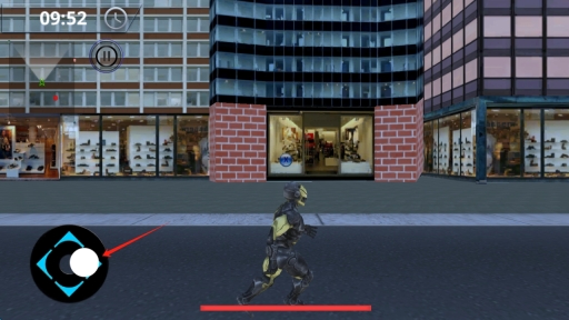 2、进入城市场景,滑动左侧摇杆,操控角色移动,探索城市完成任务,拨动轮盘移动人物。