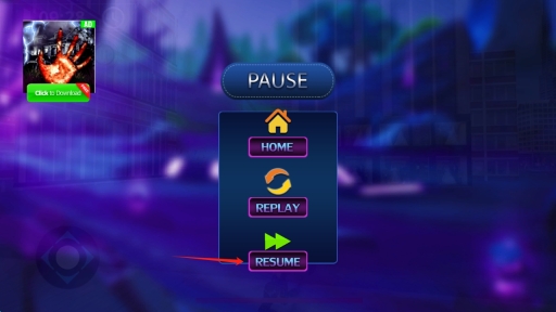 3、暂停时点击“继续”,以恢复游戏进程;如果需要重新开始游戏,请点击“重玩”;若要返回主界面,则选择“主页”,然后点击按钮继续。
