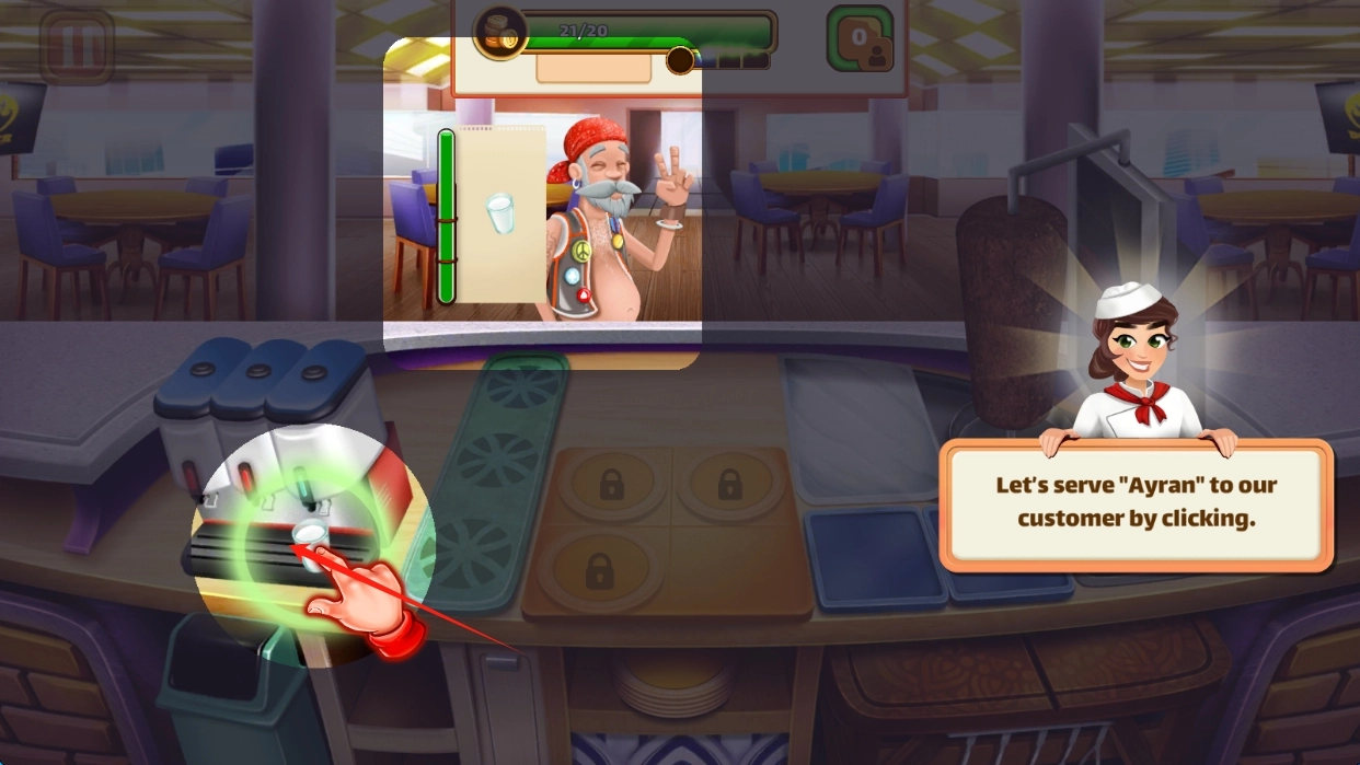 1、点击拾取,利用连续完成高难度操作触发"烧烤大师"状态,通过暂停功能调整策略与厨具。