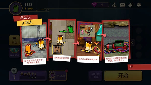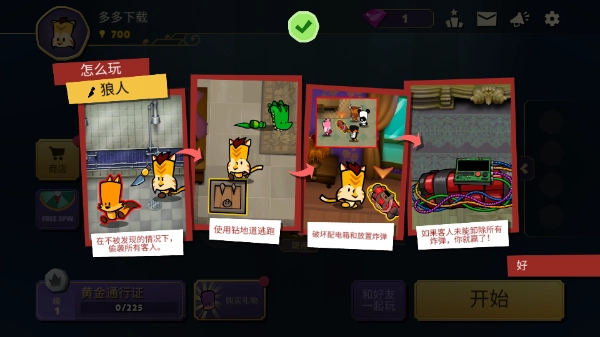 趁人不备,对所有客人发动突然袭击,随后通过钻地道的方式逃离现场,接着破坏配电箱并安放炸弹,只要客人没能拆除全部炸弹,你便获胜!