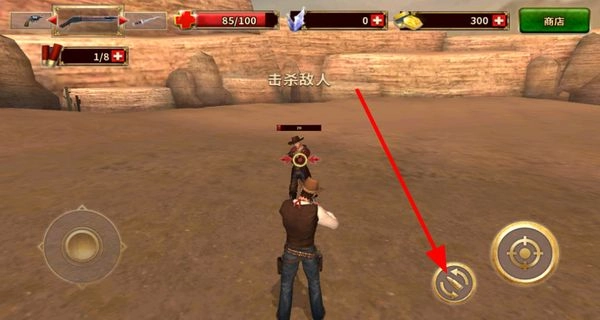 2. 踏入战斗场景,控制角色进行移动,对准敌人后点击攻击与换弹操作,通过击杀敌人达成战斗目标。