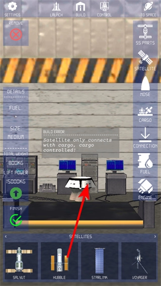 3、处理建造错误:若出现卫星仅与货运舱连接且货运舱受控的建造错误提示,需对货运舱连接方式进行调整,以规避此类错误。