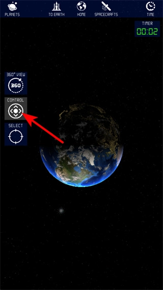 4、进行太空航行操控,当进入太空场景后,点击“CONTROL”按钮,操控航天器于太空中航行,对其他星球展开探索,并完成任务。