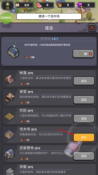 1. 能够建造发电站、帐篷、食堂、农田、伐木场、武装营地、房屋等多种设施,以满足幸存者在居住、饮食、资源收集以及安全防御等方面的需求。