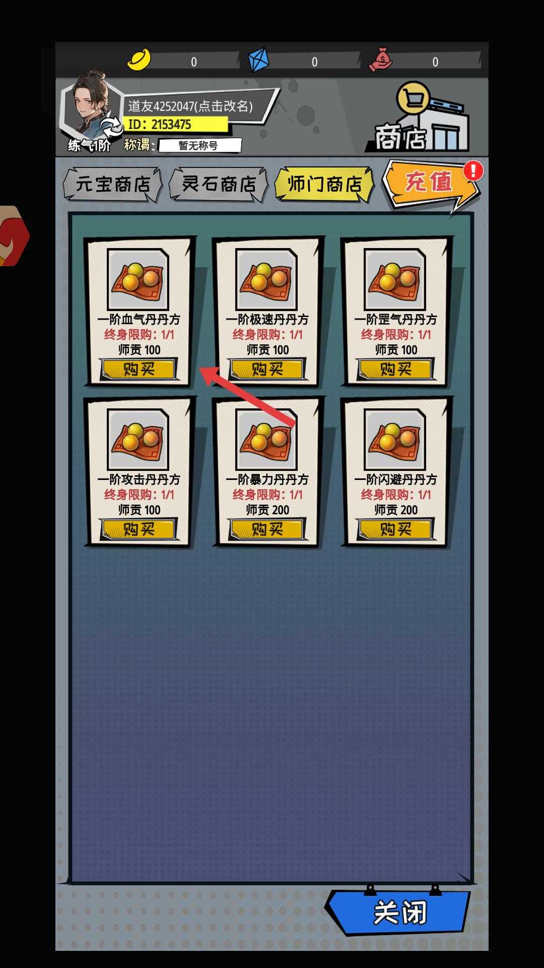 4、有多种丹药方可供购买,像一阶血气丹丹方等,消耗师贡购买丹药方,能为后续炼丹提供配方,助力角色修仙。