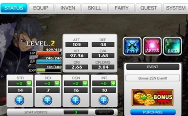 1点敏捷(DEX):0.08点命中(HIT)、0.24点闪避(EVA)、0.38点暴击(CRI)