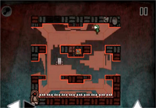 2、接着往左边走,获取过关钥匙,随后绕个圈原路返回,要小心别掉下去,掉到尖刺上,否则就得重新开始。